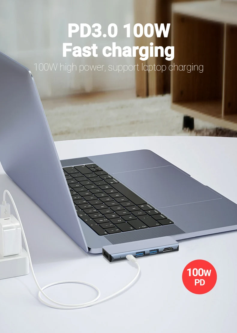 Notice:This is a USB-C hub for Macbook Pro/Air only,not for other type-c port Laptops and other type-c devices.