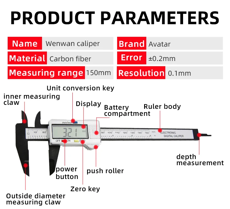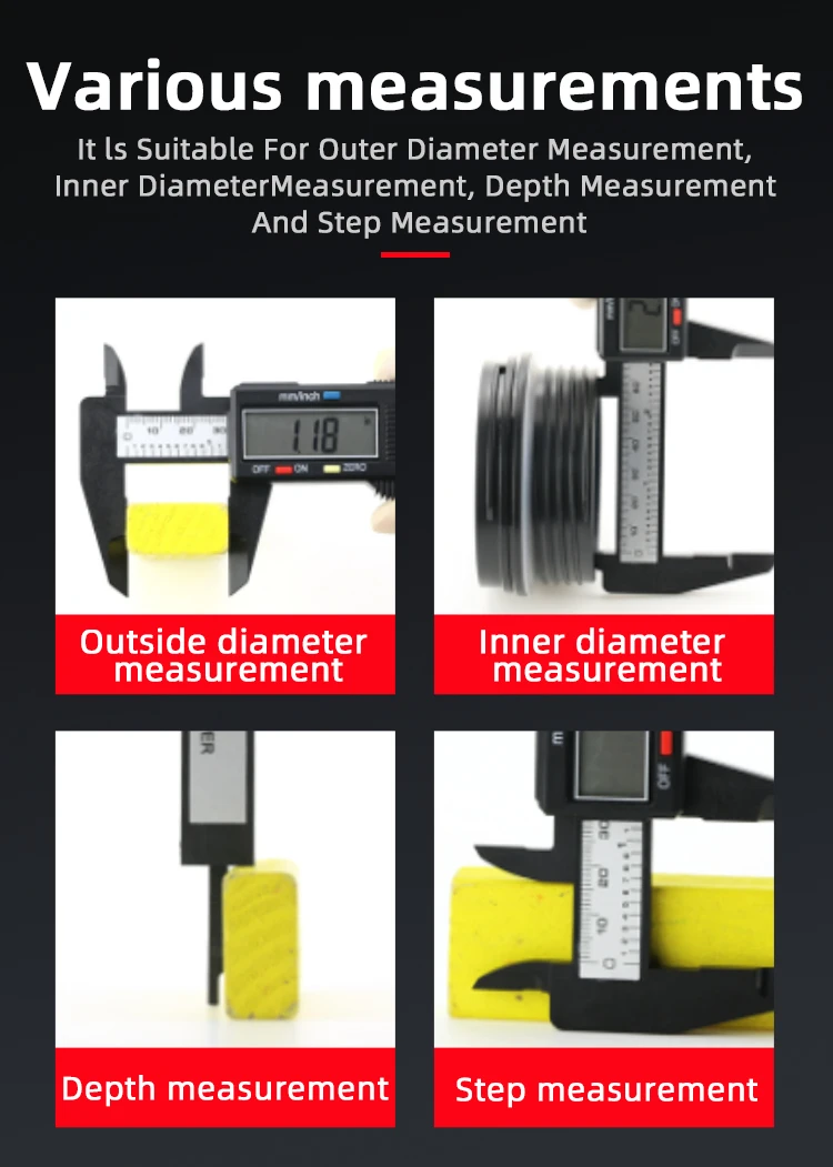 Pied à coulisse numérique Pied à coulisse électronique en plastique Vernier Outils de mesure Outil de menuiserie Règle Grand écran Pachomètre Calibre numérique