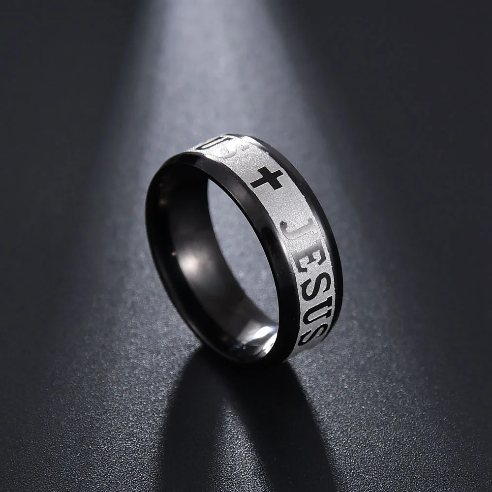 Croix de Jésus en acier inoxydable de couleur noire, lettre de prière biblique
