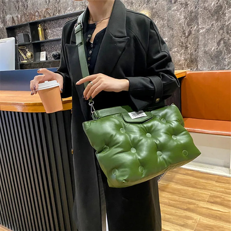 Stay warm and stylish with the Winter Quilted Down Bag. This luxurious PU leather shoulder bag features a cozy, padded design perfect for winter and adds a touch of elegance to any look.