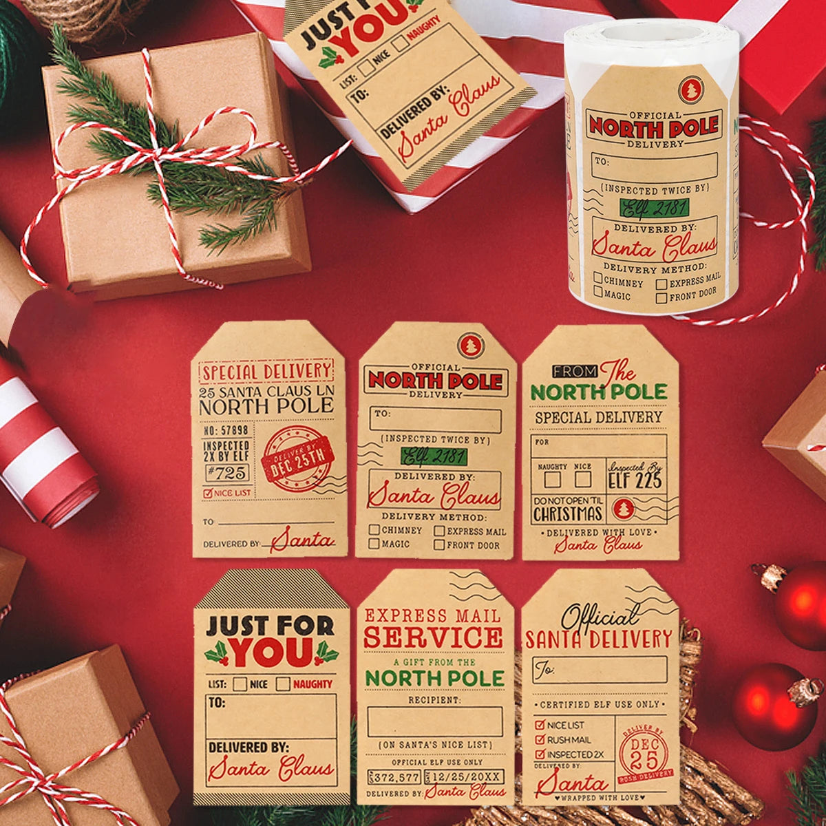 Christmas Gift Box Stickers Merry Christmas Decor For Home 2024 Navidad Kerst Xmas Decor Noel Kerst Happy New Year Gift 2025