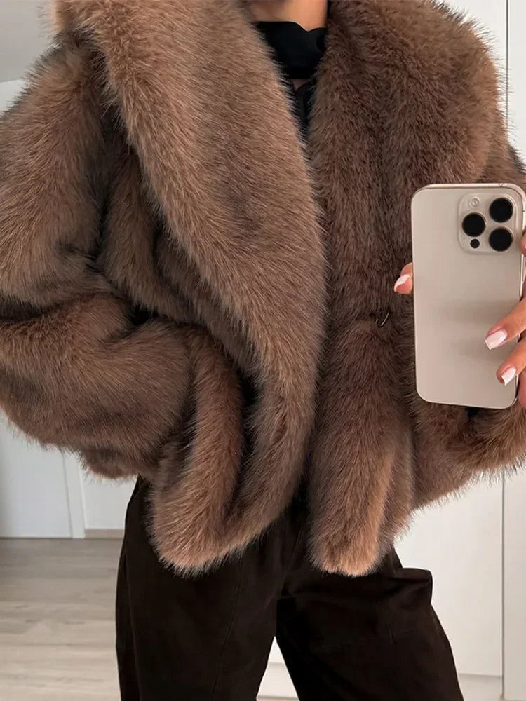 Embrace luxury and warmth with this furry faux fur coat. Featuring a chic lapel design and long sleeves, it’s the perfect vintage-inspired jacket for streetwear, adding elegance and comfort to your winter wardrobe.